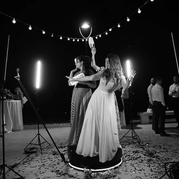 Mirror 360 booth with up to 6 people can fit
